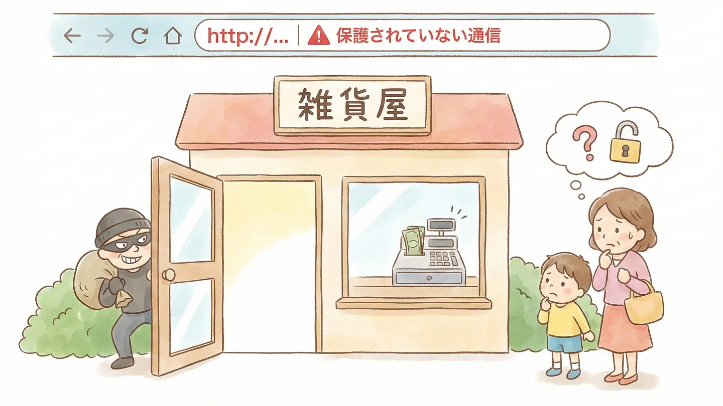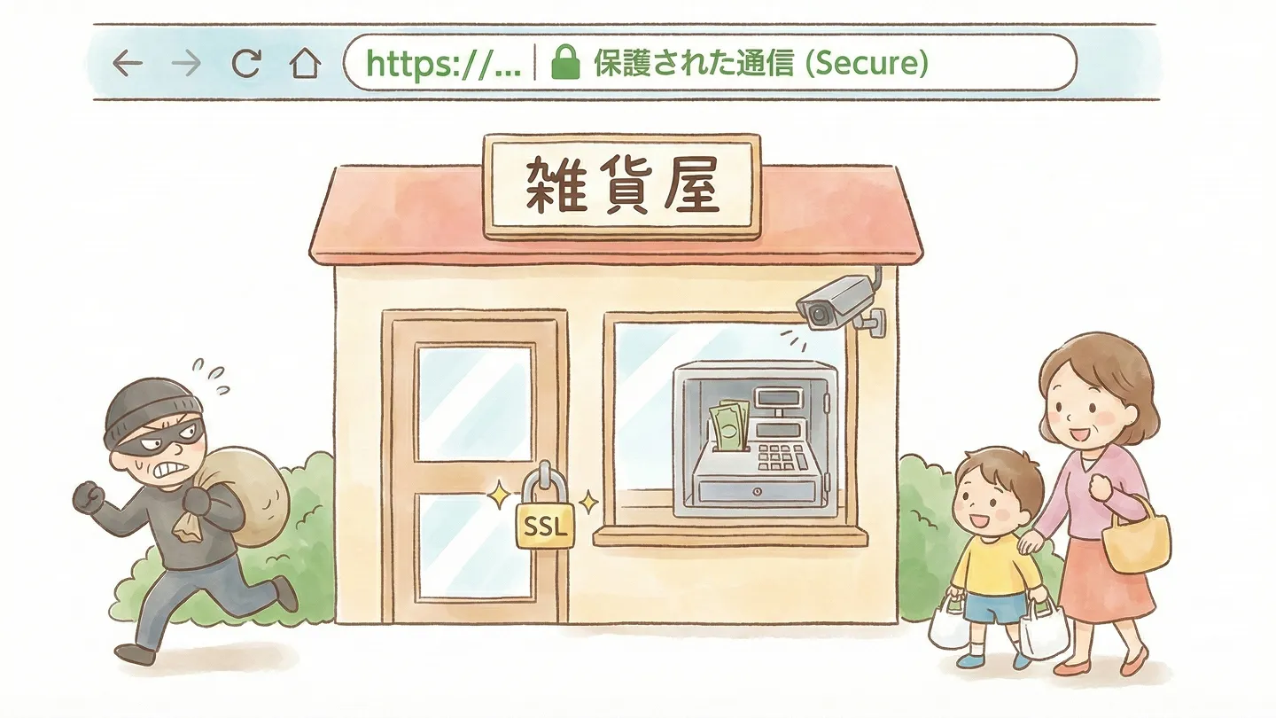 でも、これは決して難しい技術の話ではありません。あなたのサイトを訪れる大切なお客さまを守る、とってもシンプルな「鍵」のお話です。 今回も、一軒の「お店」に例えて、4つの項目で理解してしまいましょう!